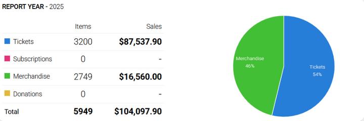 Shows at FOPAC: Below is a snapshot of Fair Oaks Performing Arts Center sales from our soft opening on Oct 4, 2025, through the last show on Dec 22, 2025.