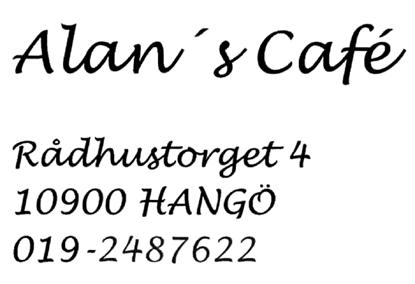 Alan’s Café är en av Hangös mest populära ”attraktioner”. Caféet, som ligger i Villa Orrman vid Hangös Rådhustorg, har en alldeles egen atmosfär. Kombinationen av kaffe, härliga (och tillräckligt stora) kanelbullar och andra bakverk tillsammans med den gamla Hangö-villamiljön är oslagbar.