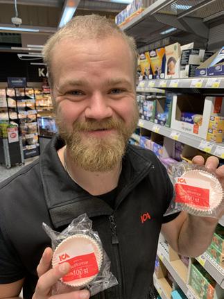 BAGERIET från delin tors–fredag Priserna gäller 3/10 –9/10-22. Smör Valio. 500 g. Gäller ej ekologiskt. Jfr pris 78:00/kg. /st 39k Ägg ICA. 10-pack. Strl M/L. Jfr pris 2:00/st. Max 2 köp/hushåll. /st 20k Toalett-, Hushållspapper ICA Skona. Toa 6-pack, Hushåll 4-pack. Jfr pris 20:69–22:97/kg. Max 1 köp/hushåll. Minst 25% rabatt! SUPERKLIPP 3 för 55kVinmarinerad rostbiff Jfr pris 349:00/kg. Ord pris 399:00/kg. Ljung 99k 5 för Kanelbullar Gäller endast tisdag! Kanelbu ens dag 4/10! 35k 5 för 3490 /hg Vi har fy t butiken med a t för en smakrik vecka. Välko en! /Anders med personal. Forshaga måndag–lördag 8–22 • söndag 9–22 förbutiken: måndag–lördag 8–20 • söndag 9–20 Telefon 054-87 00 05 • Inspireras på ica.se/forshaga Onlinehandeln kan ha skillnad i prissättning/sortiment