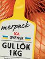 Morötter i påse, rödbetor i påse, gul lök i nät ICA. Sverige. 1 kg. Klass 1. Jfr pris 10:00/kg.