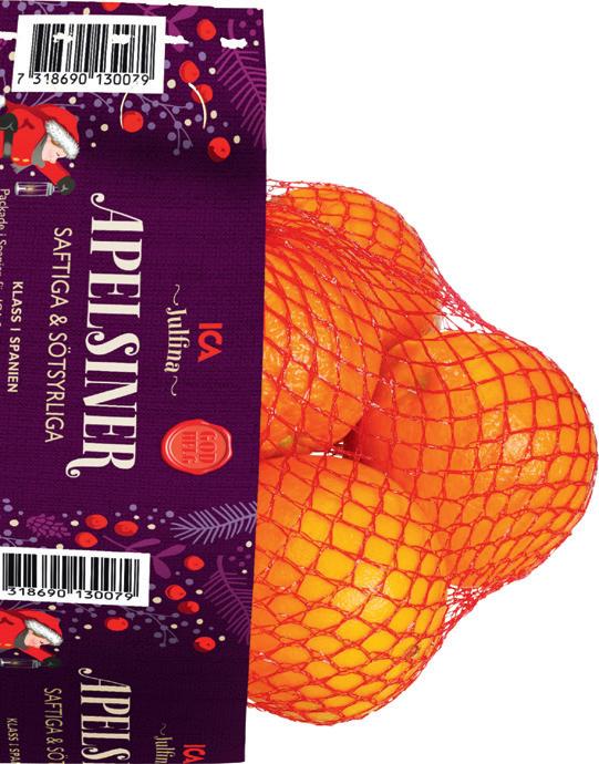 w BAGERIET Varmt välkommen! Delikatessen Julsmörgås Priserna gäller 5/12–11/12-22. 75k /st Ost/chiaruta, vallmoruta 35k 6 för Familjefavoriter Arla. Ca 750-1200 g. Edamer 23%, Gouda 28%, Gräddis 32%, Jämtgård 28%, Port salut 26%, Storsjö 31%, Vänerost 33%, Humlan EKO 33%. Jfr pris 79:00/kg. Minst 25% rabatt! SUPERKLIPP /kg 79k /st 49k Minst 25% rabatt! SUPERKLIPP /st 15k Apelsiner i nät ICA. Spanien. 1 kg. Klass 1. Jfr pris 15:00/kg. Ägg ICA. 10-pack. Strl M/L. Jfr pris 2:00/st. Max 2 köp/hushåll. /st 20k av dennavaragår till 1 krona Vi har fy t butiken med a t för en smakrik vecka. Välko en! /Anders med personal. Forshaga måndag–lördag 8–22 • söndag 9–22 förbutiken: måndag–lördag 8–20 • söndag 9–20 Telefon 054-87 00 05 • Inspireras på ica.se/forshaga Onlinehandeln kan ha skillnad i prissättning/sortiment