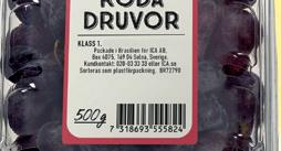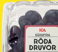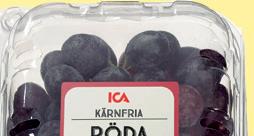 Röda kärnfria druvor i ask ICA. Sydafrika/Peru. 500 g. Klass 1. Jfr pris 60:00/kg.