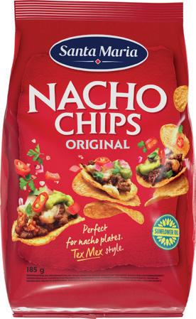Santa Maria. 200 g, 320 g, 230 g, 185 g. Gäller tortillabröd 320 g, tacosås och salsasås 230 g samt chips och nacho 185 g. Jfr pris 31:25-54:05/kg. Max 1 köp/hushåll.