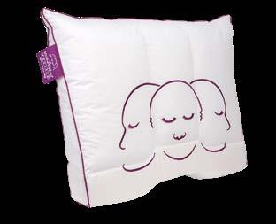 3 kamer kussen. De twee buitenkamers zijn elk gevuld met 110 gram 90% witte dons. De binnenkamer is gevuld met 500 gram supersofte Comforel ECO polyester vezelbolletjes. De opstaande rand van dit kussen zorgt voor een goede ondersteuning van het hoofd en de nek.
