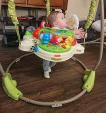 Both my girls loved these from about five or six months old to around nine or 10 months. They would wear themselves out bouncing and playing in it. For our middle daughter, it was wonderful for meal times because, after she was done eating, she’d play in it and we could have a meal in peace!