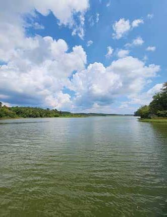 This 6-bedroom, 6.5-bath lakefront rental sleeps 18 and features a private dock, wraparound porches, and stunning views.