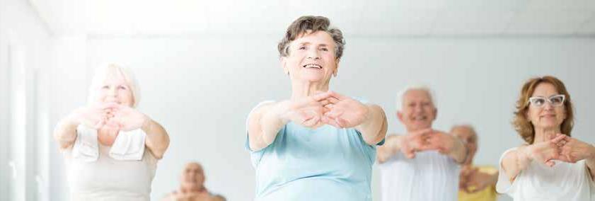 If it’s comfortable to sit crossedlegged, do so. Keep your hands on your knees. Relax your whole body by exhaling, dropping your shoulder, and breathe. Maintain the position as long as it is comfortable. 2. SEATED TWIST: Seated on the floor (always on a carpet or mat) with legs crossed, extend your hand to the floor behind your hip. Hold for 30 to 60 seconds. The posture offers a great stretch while relieving tension. 3. COBBLER’S POSE: Seated, place the heels of your feet together and hold on to your ankles. Hold for 30 seconds to two minutes. The position targets the hips and groin muscles, allowing you to straighten your back when sitting. WALKING MOVES One of the best ways to energize, build your fitness level, burn calories, and enjoy the outdoors is walking. Without stretching first, you may risk tightening hips, hamstrings, and the lower back. Try the following yoga positions to complement your walking workouts.