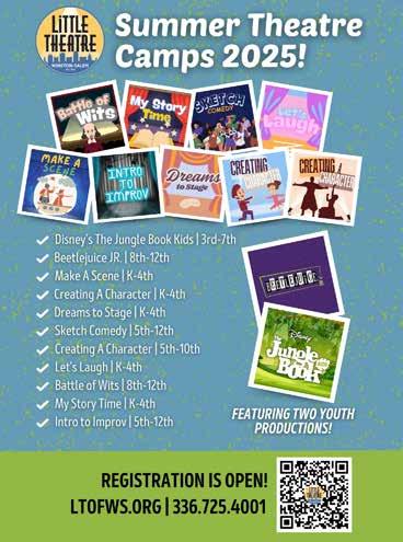 9am-5pm, The Little Theatre of Winston-Salem. Little Theatre of Winston-Salem’s Spring Camp is an exciting, immersive experience designed for aspiring young actors ready to take their skills to the next level! Campers will dive into advanced acting techniques, explore character development and collaborate on scene work with fellow theatre enthusiasts. This camp offers a unique opportunity to sharpen their stagecraft, make new friends and fully embrace their passion for theatre! Cost: $225.