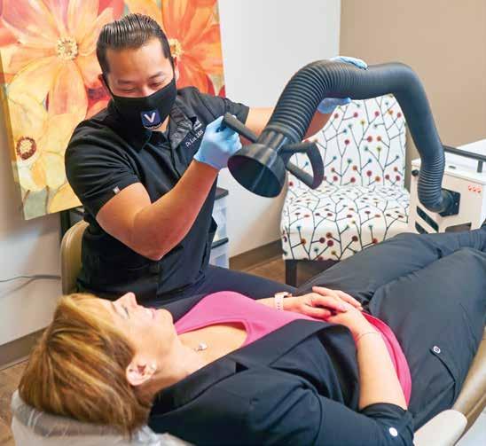 Strongly committed to the health and safety of patients and their families, the practice is now embracing the uncertainty of the last year-and-a-half, and proudly introducing their commercial grade dental filtration system. With a stateof-the-art biological removal process that protects your respiratory health, this unique air filtration system introduced by Vivid Dental’s own Dr. Justin Roberts and made in the USA, significantly reduces the risk of Covid, as well as other infectious Bio-aerosols. For everyday use, this means a 1000-cubic foot treatment room (a 10’ x 10’ x 10’ space) could achieve a clean air level in less than five minutes, on the high setting of up to 200 cubic feet per minute. This makes the BioAblate 10 times faster than previous technology in decreasing the transmission ability of airborne pathogens in a healthcare environment.