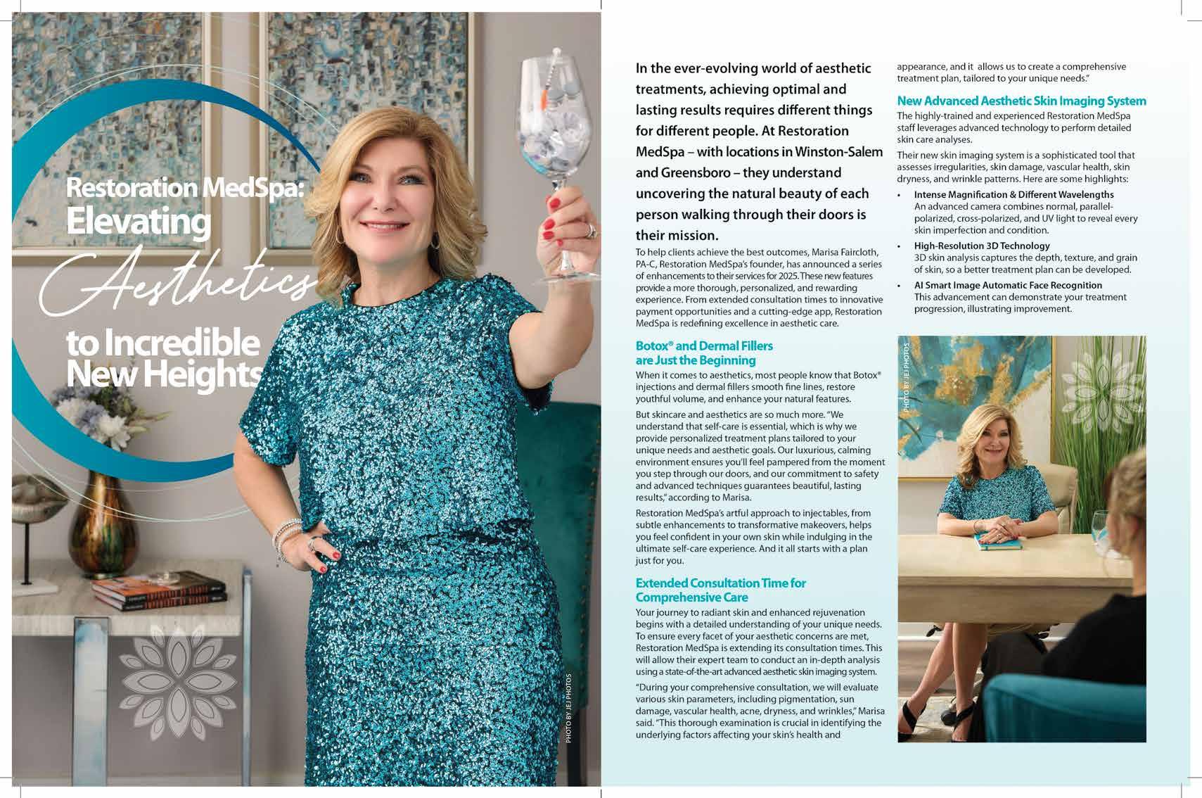 Speaking of things that make me happy—how INCREDIBLE is this month’s cover photo?! Jon Eric of JEJ Photos absolutely knocked it out of the park with this fun and unique shot. I was thrilled to be at the shoot and even more thrilled when Marisa, the founder of Restoration MedSpa, said she was open to doing something out of the box. You can learn all about Restoration MedSpa starting on page 52.