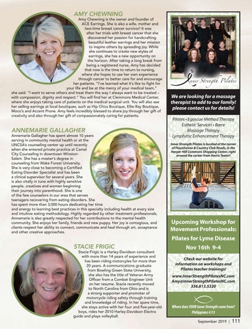 Nov 16th 9-4 Check our website for information on workshops and Pilates teacher trainings! www.InnerStrengthPilatesNC.com Amy@InnerStrengthPilatesNC.com 336.813.5320
