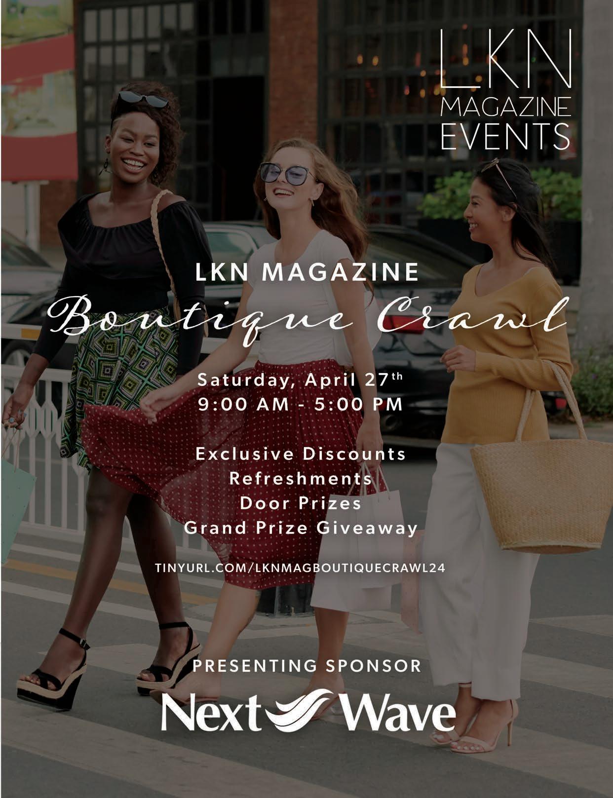 This is a one-day, self-guided crawl to boutiques around the Lake Norman area! There will be 14 participating stores ready to roll out the red carpet for you and your crew! Your general admission ticket is your all-access pass to exclusive discounts, specials and refreshments at all participating boutiques! There will also be gift card giveaways, door prizes at every stop and a grand prize giveaway! But wait, there’s more! Start the day at our pre-game party, details coming SOON! tinyurl.com/LKNMagBoutiqueCrawl24