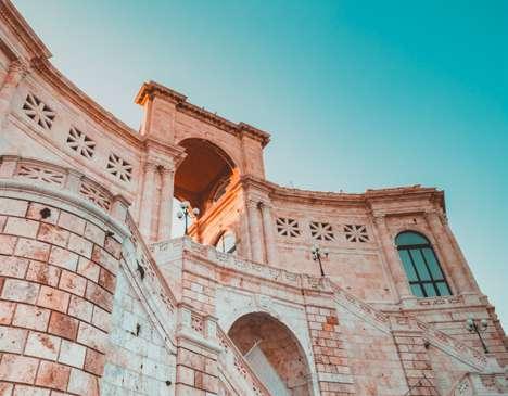 co composto da colonne di calcare di colore bianco e giallo con capitelli in stile corinzio. Non è da meno la vista dalla Terrazza Umberto I, dove si può godere la vista di tutta la città e dello splendido mare cristallino sardo.