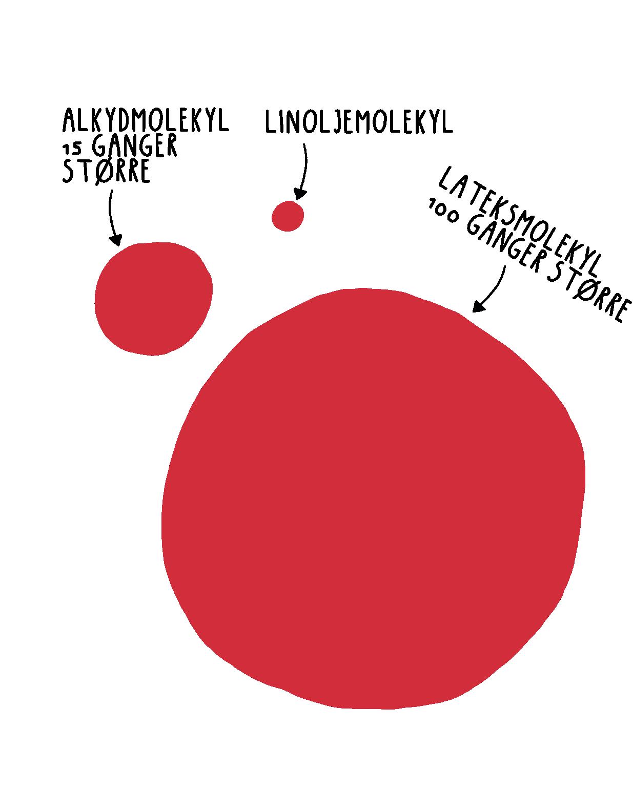 Her ser du hvor stor forskjell det er på molekylene ulike malingstyper. Dette har noe å si for hvordan den trekker inn i treverket.