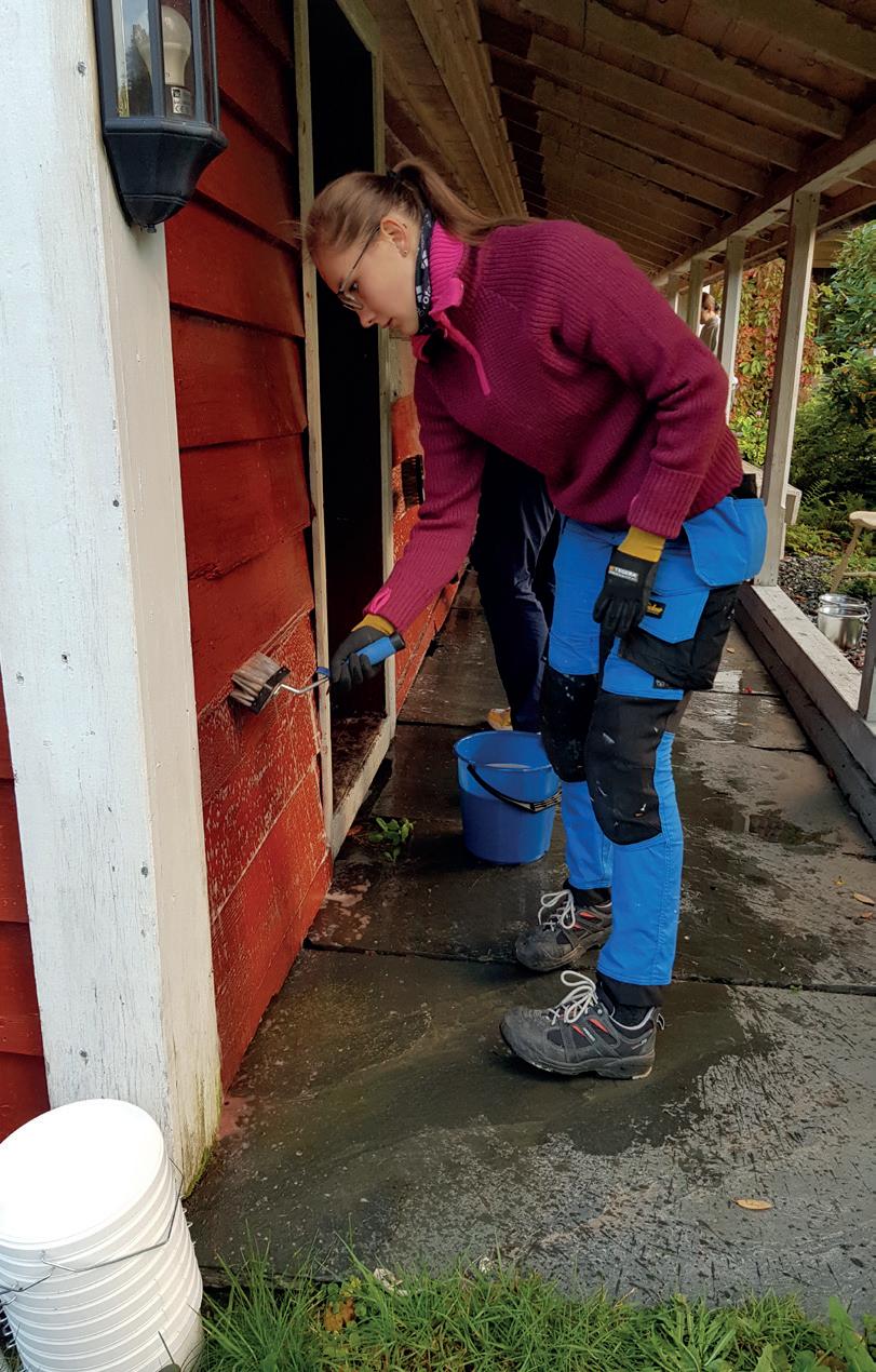 Akrylmaling danner et tett lag på overflaten. Dette gjør at fuktigheten ikke slipper ut og treverket kan råtne. Foto: Fortidsminneforeningen/Hedda Skagen Paulson