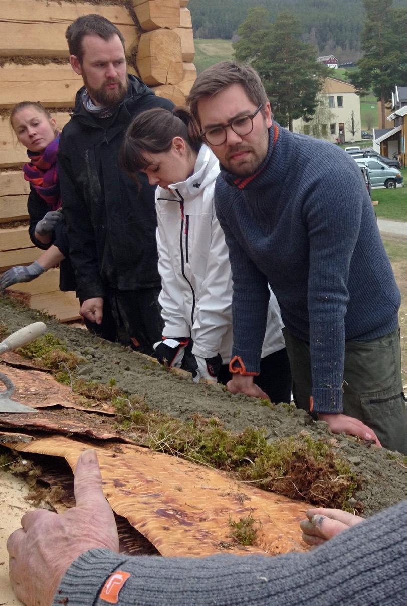 Kurs i taktekking på Hjerleid, Dovre. Deltakere får opplæring i torv og nevertekking av tradisjonsbærer