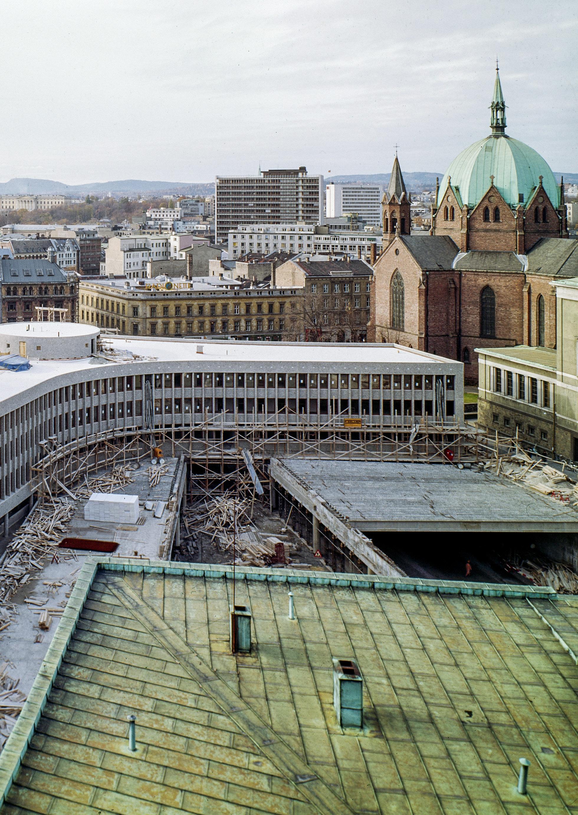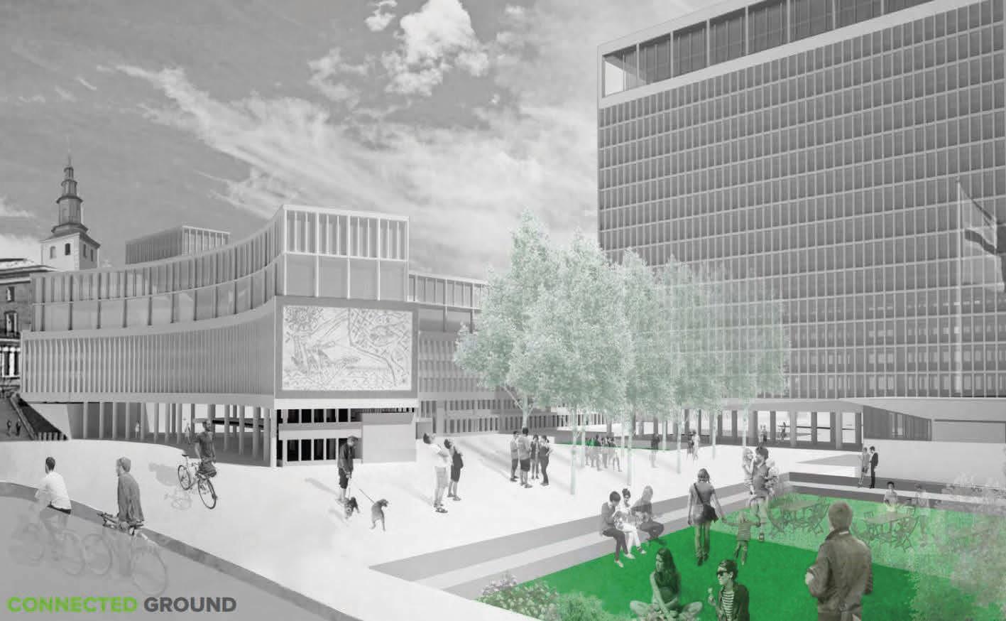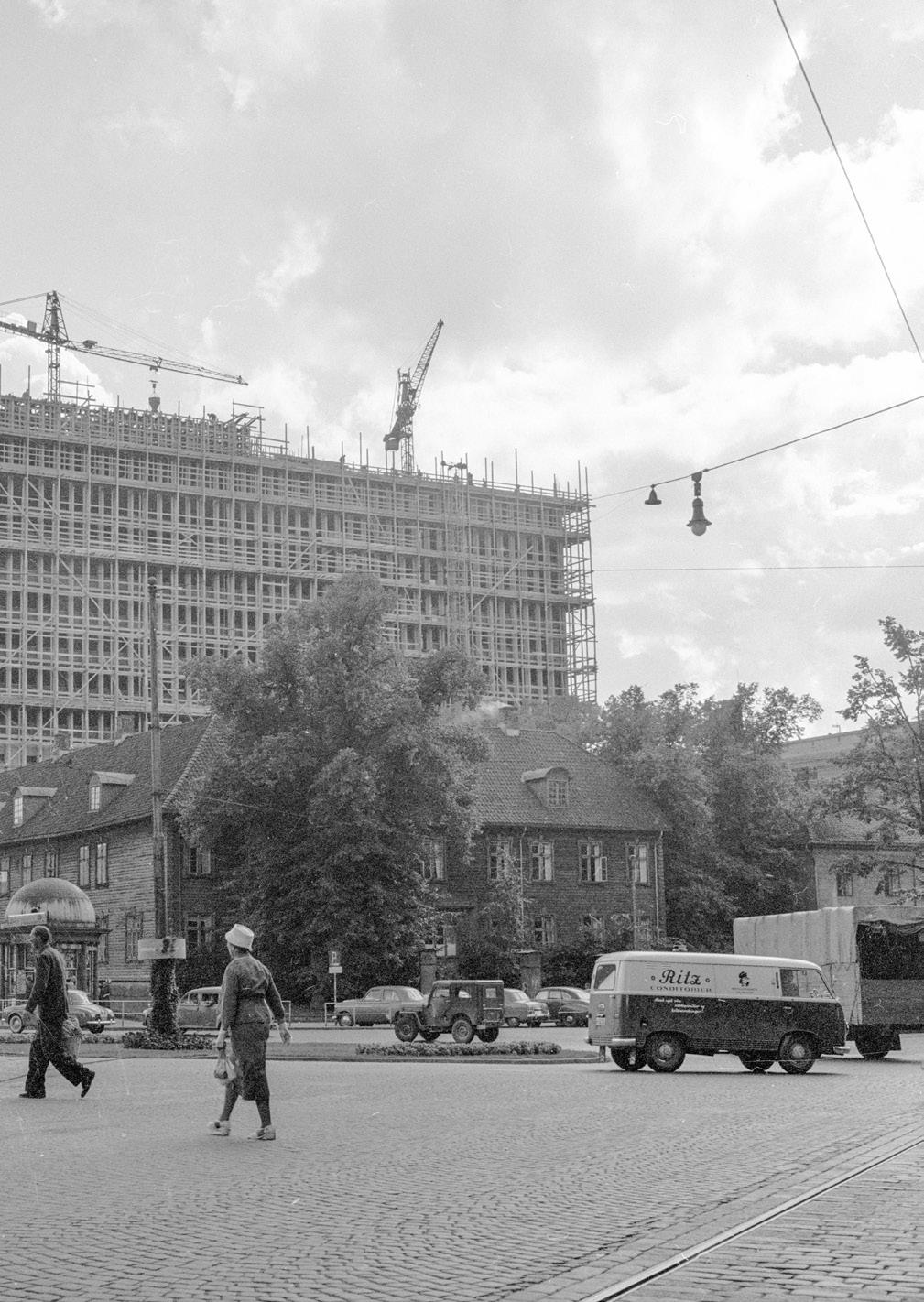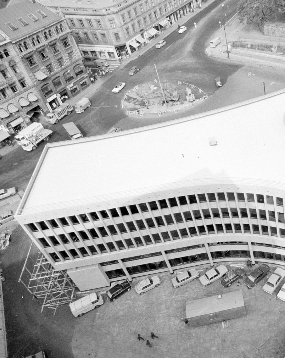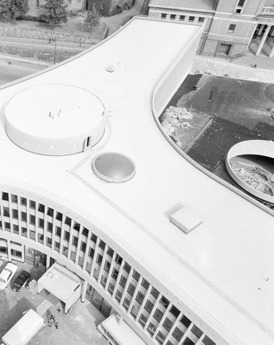 Forsidebilde: Y-blokken og Høyblokken, tegnet av arkitekt Erling Viksjø. Perspektiv fra Deichmanske hovedbibliotek på Hammersborg. Foto: Teigens fotoatelier/DEXTRA Photo, Teknisk museum.