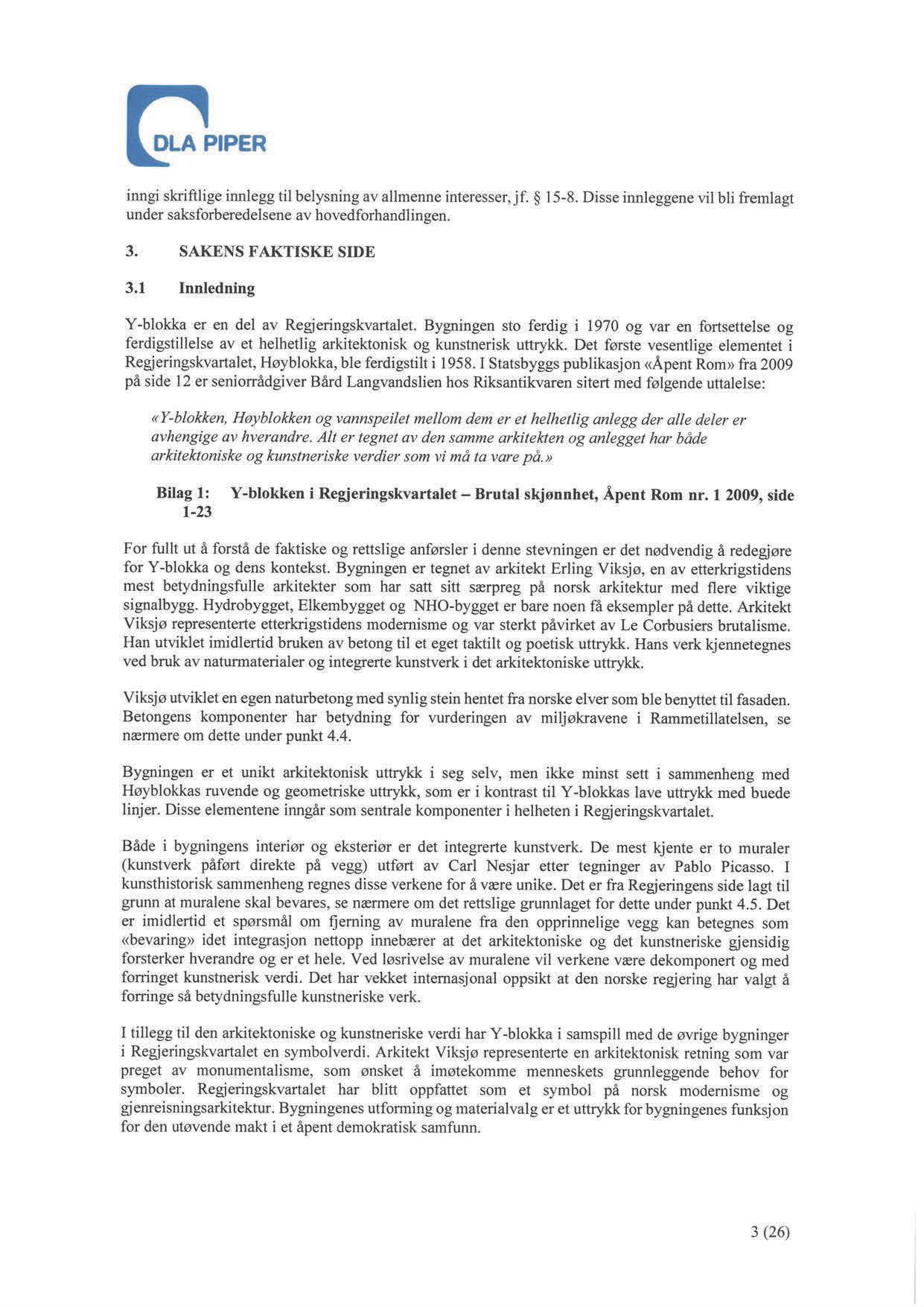 og evne til ressursmobilisering ble dermed sentralt. Gjengangere kommer ofte bedre ut av rettsprosesser. Bransjer og interesseorganisasjoner som Norske arkitekters landsforbund og Fortidsminneforeningen er eksempler på slike gjengangere, i den forstand at de har langt erfaring med konflikter rundt rettslige reguleringer og byråkratiske prosesser. Saksøkerne brukte advokatfirmaet Lynx høsten 2019 og vinteren 2020 før de i februar 2020 byttet til prosessfullmektigene Berit Reiss Andersen og Ivar V. Kristiansen. En privat giver hadde stilt midler til disposisjon, slik at saksøkerne kunne føre saken for tingretten.15 Støtteaksjon for å bevare Y-blokka og Oslo Arkitektforening deltok med skriftlige innlegg «til belysning av allmenn interesse». Selv om saksøkerne tapte, fritok tingretten dem fra å betale statens omkostninger fordi de ble ansett for å ha et behov for rettslig prøving i lys av de uopprettelige konsekvensene av statens beslutning om å rive Y-blokka.16 Norske arkitekters landsforbund og Fortidsminneforeningen påklaget ikke kjennelsen fordi en anke ikke vil bli behandlet før Y-blokka hadde blitt påført «ubotelig skade».17 Som nevnt ble representantforslaget om å stoppe rivingsvedtaket avvist i juni 2020.18 I forbindelse med mobiliseringen av ressurser til den rettslige prøvingen er to andre initiativer relevante: I juni 2020 tok støtteaksjonen og arvingene etter arkitekt Erling Viksjø og kunstner Carl Nesjar, representert ved advokatfirmaet GjessingReimers, ut stevning mot