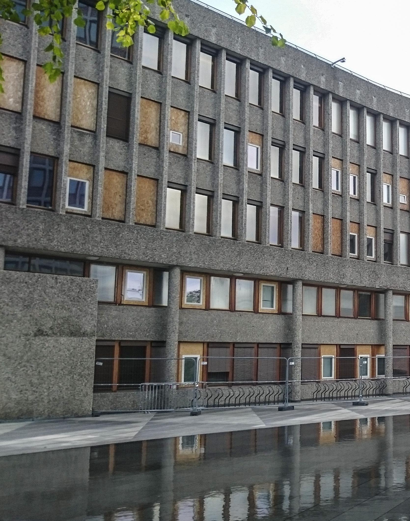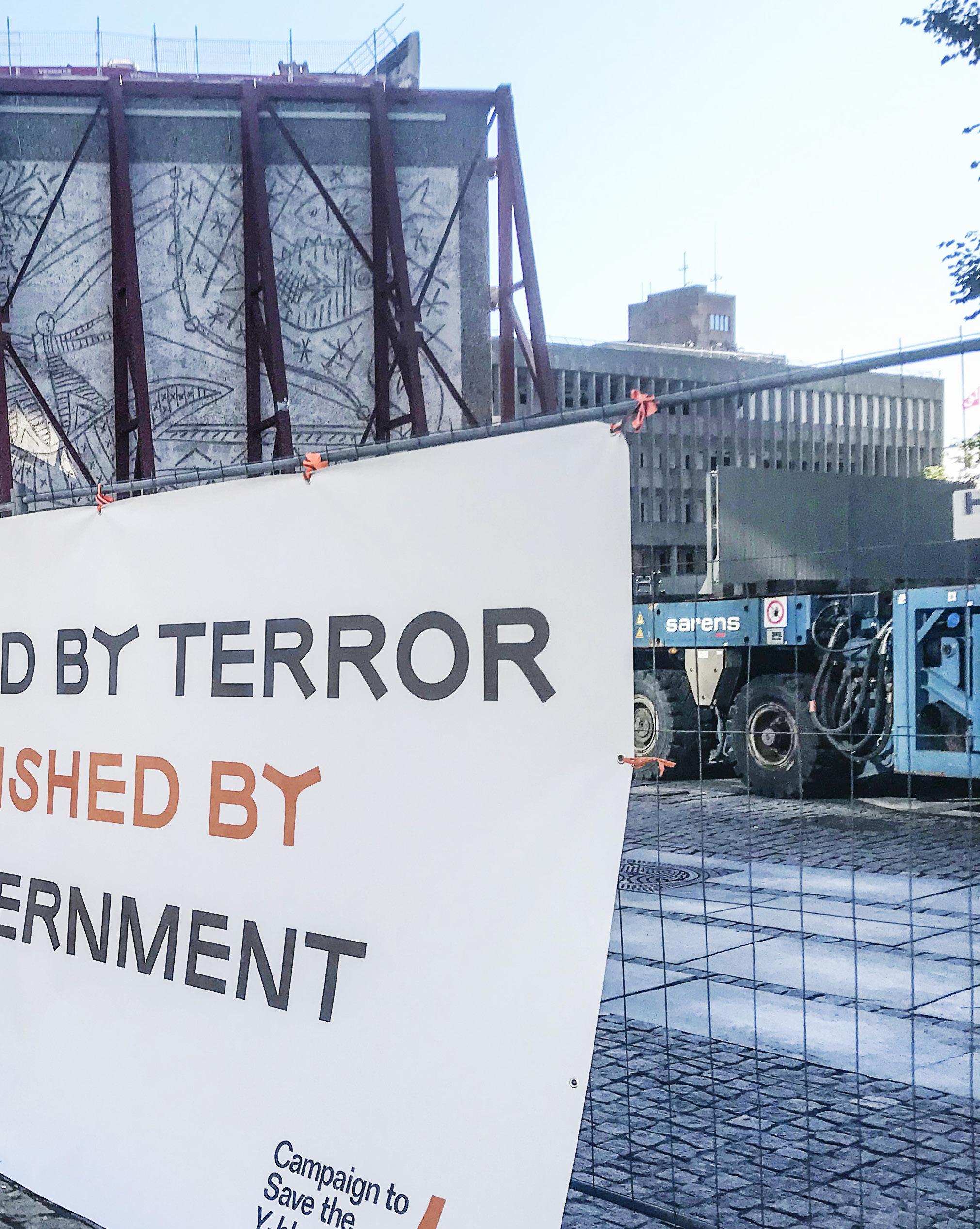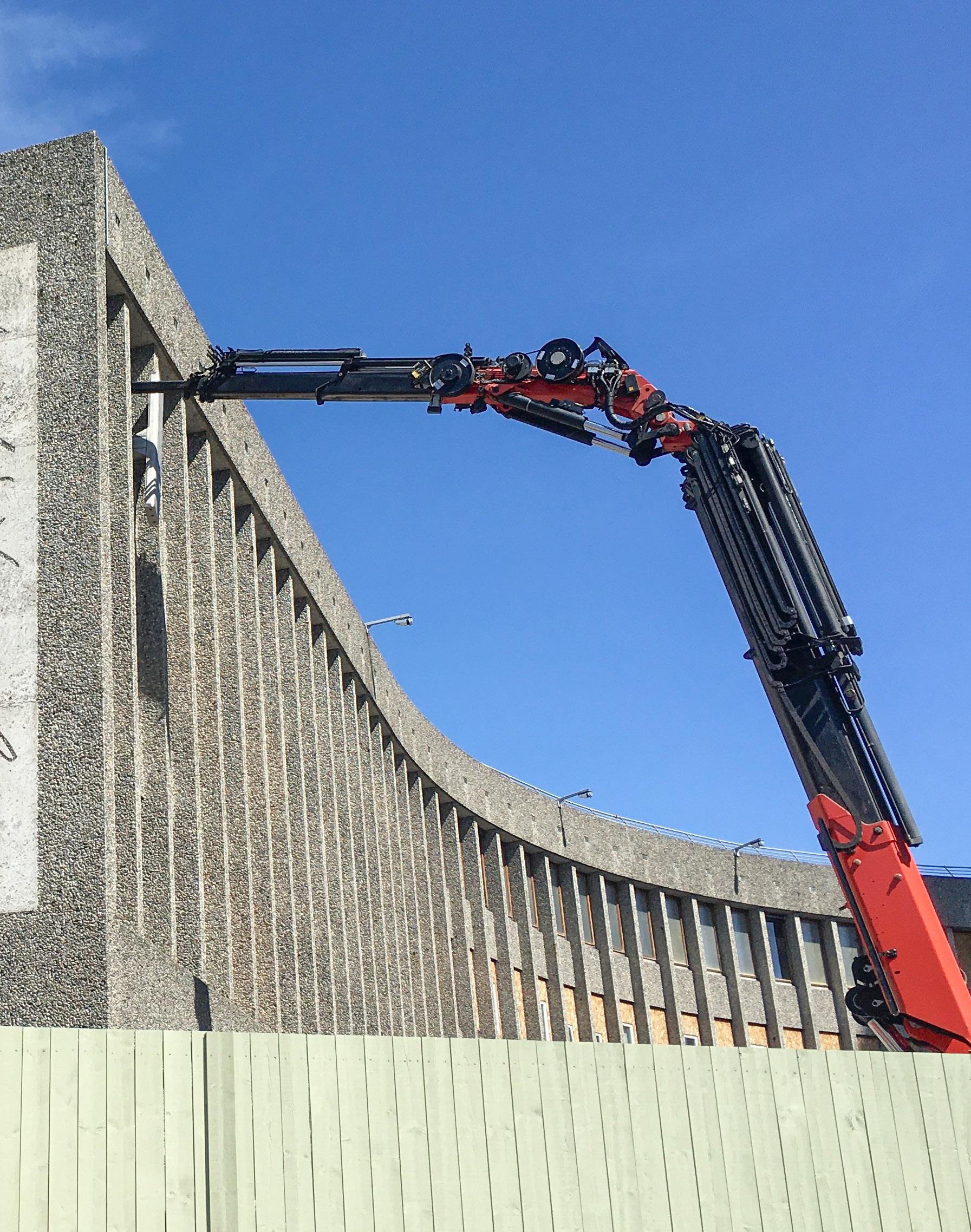 This used to be the future. Støvet etter rivingen har lagt seg. De to Picasso-relieffene, «Måken» og «Fiskerne», ble skåret løs fra sin sammenheng, mens resten av Y-blokken ble knust og gjenbrukt som underlag for asfalten på fylkesvei 1488 i Lillestrøm kommune. Let’s tear the bloody lot down, and start all over again.