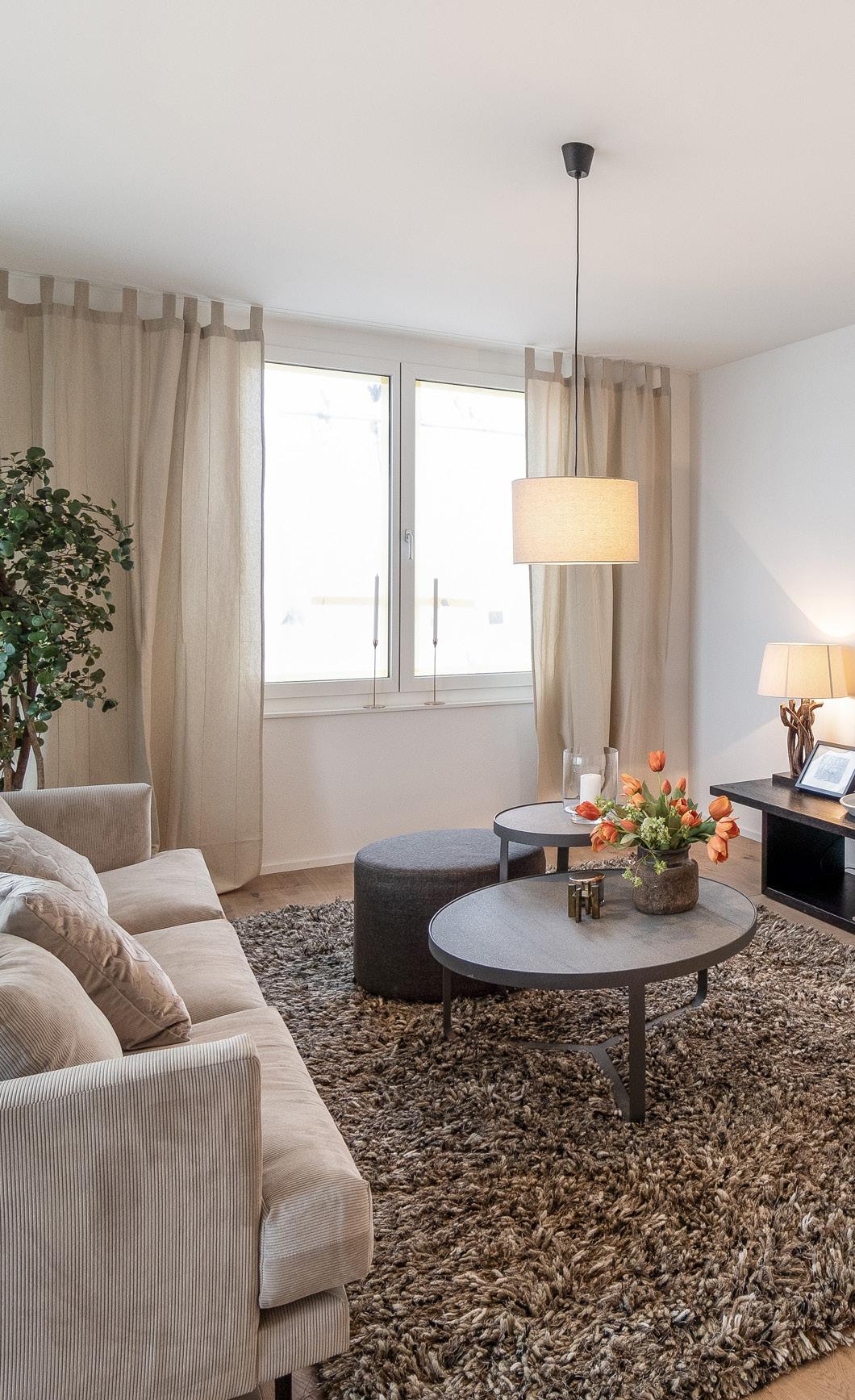 VORBEHALT: Dieser Prospekt ist kein Vertragsbestandteil. Abweichungen vom Baubeschrieb, den Plänen und Visualisierungen zu den tatsächlichen Begebenheiten am Bau können entstehen. Die Fotos sind Wohnbeispiele. Sämtliche Flächenmasse sind Zirka-Masse. In den Nebenräumen werden Leitungen und technische Installationen teilweise sichtbar an Decken und Wänden montiert. Dabei wird die Türzargenhöhe nicht unterschritten. Wohnflächen umfassen die Gesamtfläche innenkannt Aussenmauer, ohne allgemeine Schächte. Alle Angaben sind unverbindlich und freibleibend. S.E.&O. – 202503-3