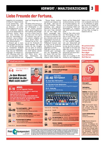 Fotos: Christof Wolff, Stadionwelt, Sonja Häuseler, Benedikt Jerusalem, Nadine Koch, Sandra und Michael Schneider, Horstmüller Layout & Bildbearbeitung: Stadionwelt Christian Lewandowski Druck: Rheinisch-Bergische Druckerei Düsseldorf Nachdruck, Vervielfältigung (inkl. Mikroverfilmung, Verarbeitung mit elektronischen Medien und Übersetzung), auch in Auszügen, bedarf der ausdrücklichen Genehmigung des Herausgebers. Ausführliche Angaben zum Verein finden sich unter www.fortuna-duesseldorf.de