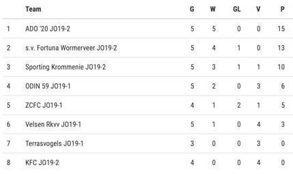 ZCFC Oranje Leeuwen 1 12 3 26 nov 09:00 s.v. Fortuna Wormerveer Spurs De Dijk Flamingo's 26 nov 09:15 ADO '20 JO12 2 Fortuna Wormerveer JO12 1 3 7