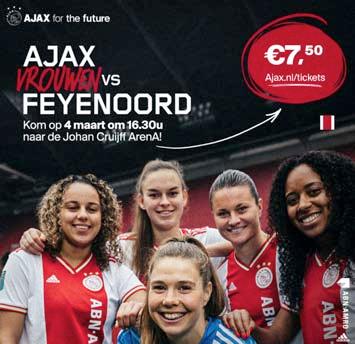 Voor het eerst in het tienjarige bestaan van de Ajax Vrouwen spelen de Ajacieden de Klassieker in de Johan Cruijff ArenA. Op zaterdag 4 maart ontvangen de Ajax Vrouwen Feyenoord in de ArenA. Met dit geweldige affiche gaat een langgekoesterde wens van velen in vervulling. Ajax, de hoofdsponsor van Ajax Vrouwen ABN AMRO en de Johan Cruijff ArenA zetten zich gezamenlijk in om er een bijzondere en unieke ervaring van te maken voor iedereen. En dat biedt ook kansen aan onze leden.