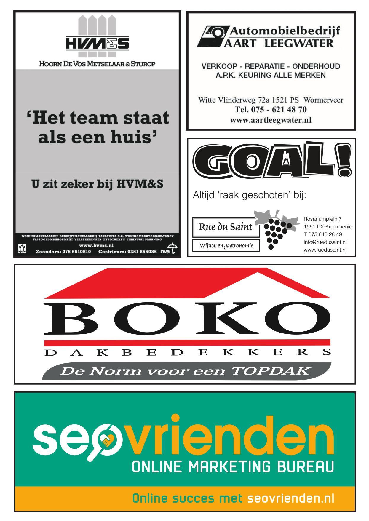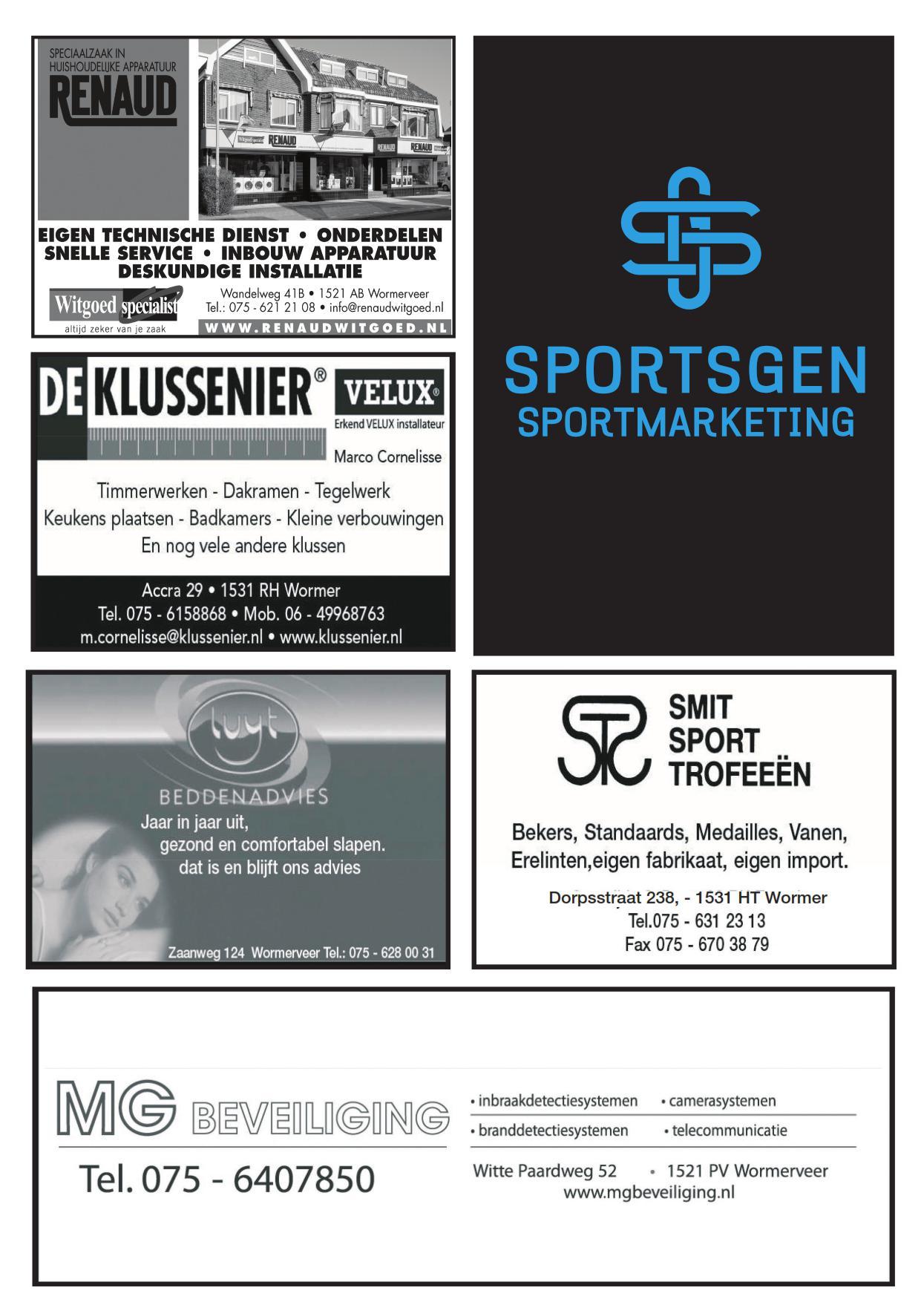 te verrichten en klaar ben je. Niks geen direct contact zoals nu hier bij jullie in de bestuurskamer.’ En daar heeft die arbiter natuurlijk een punt. Nu werd hij nog even ‘vertroeteld’ door Liesbeth, Suus en ondergetekende. Een dergelijk contact is wat mij betreft nog altijd van belang voor het welbehagen van de arbiters, maar ook voor de mensen die samen met hen de wedstrijden moeten afwerken. Dat vraagt dan ook een stipte bezetting van ons Wedstrijd Commissariaat en dat kost - als ik de verhalen moet geloven en op mijn eigen waarneming kan vertrouwen - al moeite genoeg. Of zoals u het ongetwijfeld zult beamen: iedere verandering is niet altijd een verbetering.