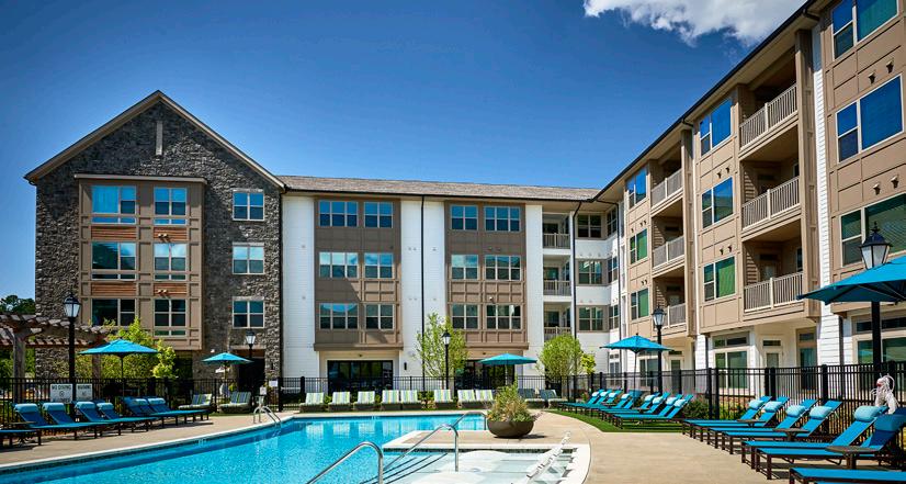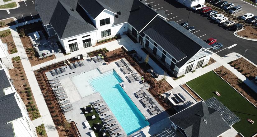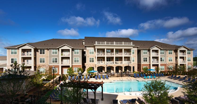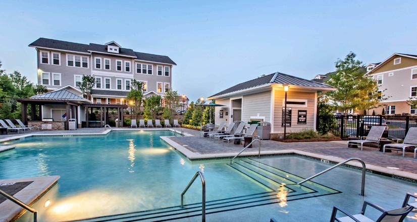Just two miles from Lake Norman, The Grove at Morrison Plantation offers lake-living and is only a 30 minute drive from bustling Charlotte. The buildings are three stories over post tension slab. Amenities include a saltwater swimming pool, grilling stations, fitness center, dog park, pet spa, and a multiuse garage with car wash.