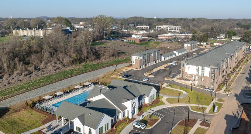 The Lindley at Grove 98 is part of a master development in Wake Forest, NC. The 232-unit, mixed-use development consists of nine residential buildings, a freestanding clubhouse, a pool pavilion, five detached garage buildings, a maintenance building, and a trash enclosure. The site has resort-style amenities, including a 9,000 SF clubhouse, a pool, a beer garden, and a dog park.