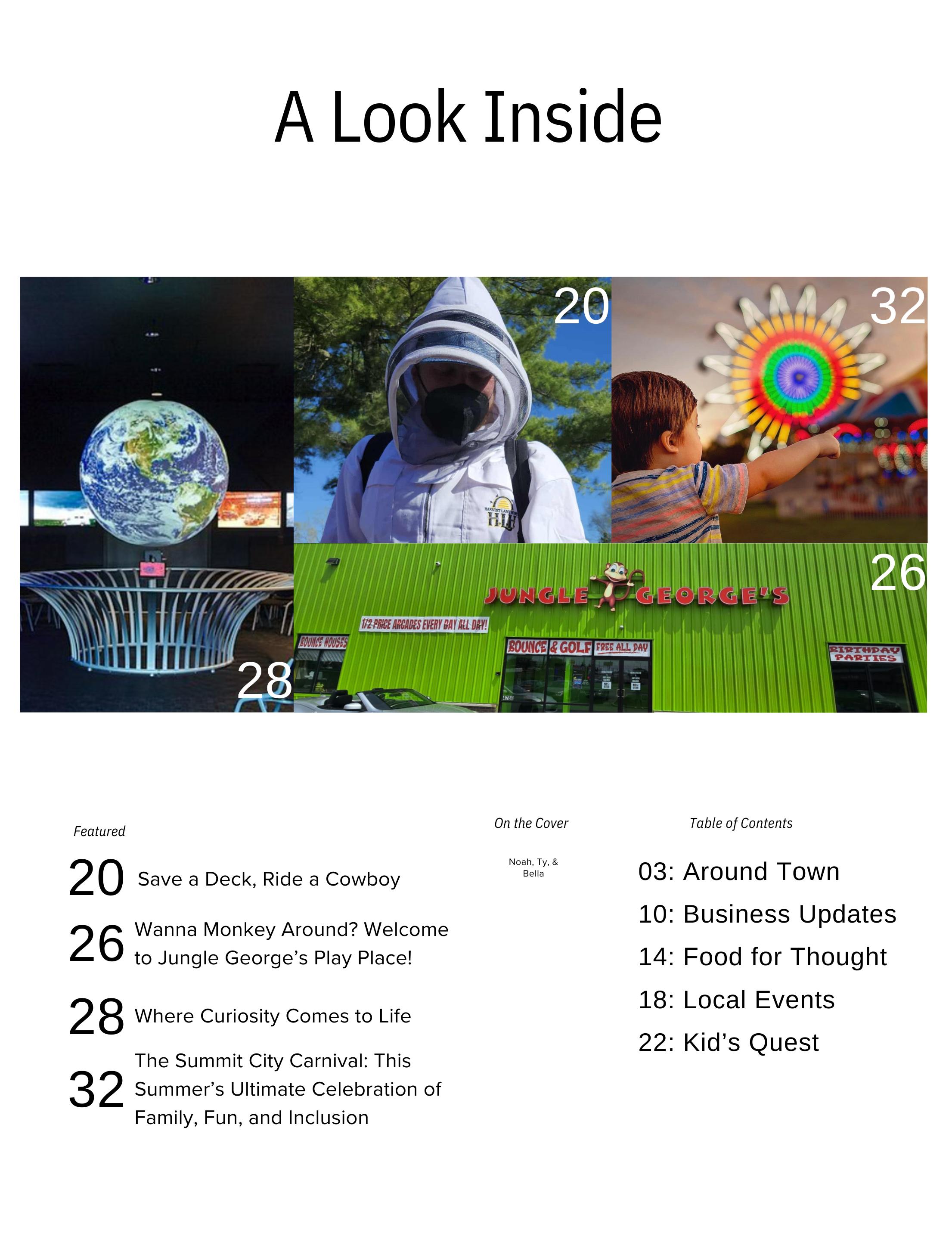 Our Kids & Pets Issue is packed with ways to enjoy this special time of year with the ones who matter most-- both the two legged and four legged kind. Inside you’ll find family-friendly features on local favorites like the Summit City Carnival, Jungle George’s and Science Central, perfect for squeezing every ounce of joy out of summer break.