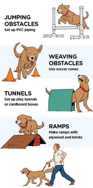 Create your own Agility jump for your dog. Using household items such as a broom pole and chairs as anchors. Place the pole between the two anchors. Practice introducing your dog to the jump first, then guide them over the jump with their favorite toy or treat