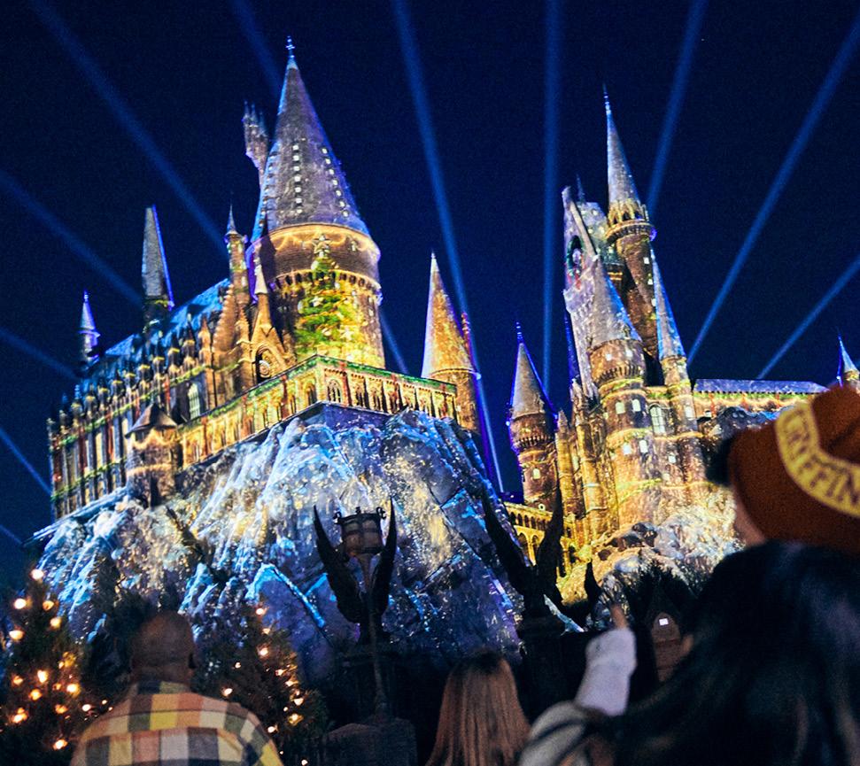 Hogwarts™ castle lights up the night and festive decor brings cheer to Hogsmeade™, Diagon Alley™, and wizarding Paris. It’s Christmas in The Wizarding World of Harry Potter™ across three parks at Universal Orlando Resort. Get into the holiday spirit with The Magic of Christmas at Hogwarts™ Castle projection show at Hogsmeade™ in Universal Islands of Adventure.