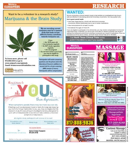CLASSIFIEDS Want to be a volunteer in a research study?