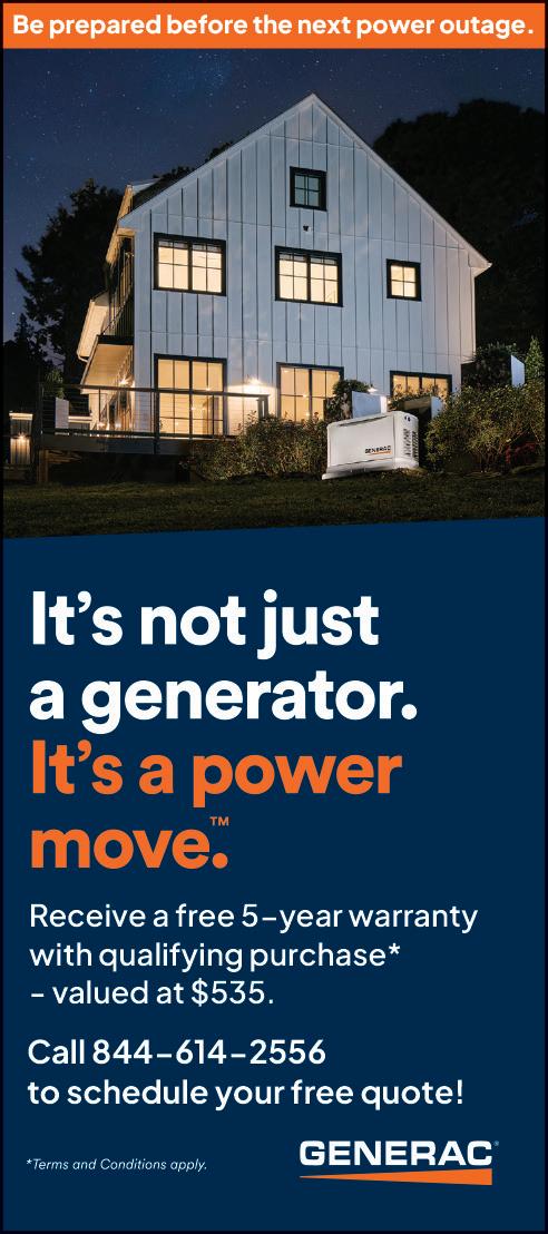 be ready with a Generac Home Standby Generator. Act now to receive a FREE 5-Year warranty with qualifying purchase. Call 817-752-957 today to schedule a free quote. It’s not just a generator. It’s a power move. (MB).