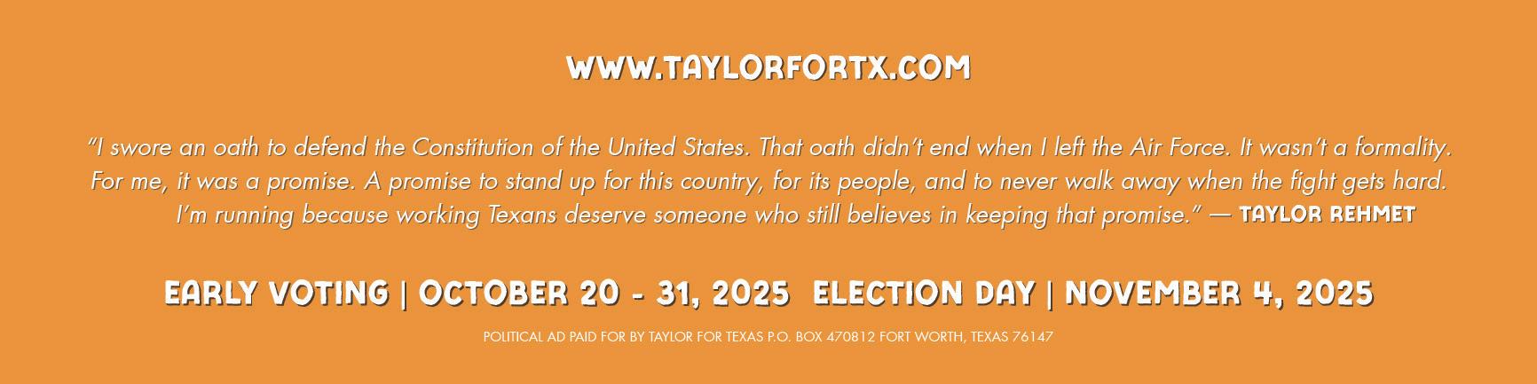 On October 20, polls open across Tarrant County. Between then and Election Day, November 4, 2025 you have the power to decide whether the next Texas State Senator represents billionaires and lobbyists or the people who build our schools, drive our buses and fix our power lines. I’m asking you to join me. Talk to your friends, make a plan to vote and be part of the movement that finally gives working Texans the voice we deserve.