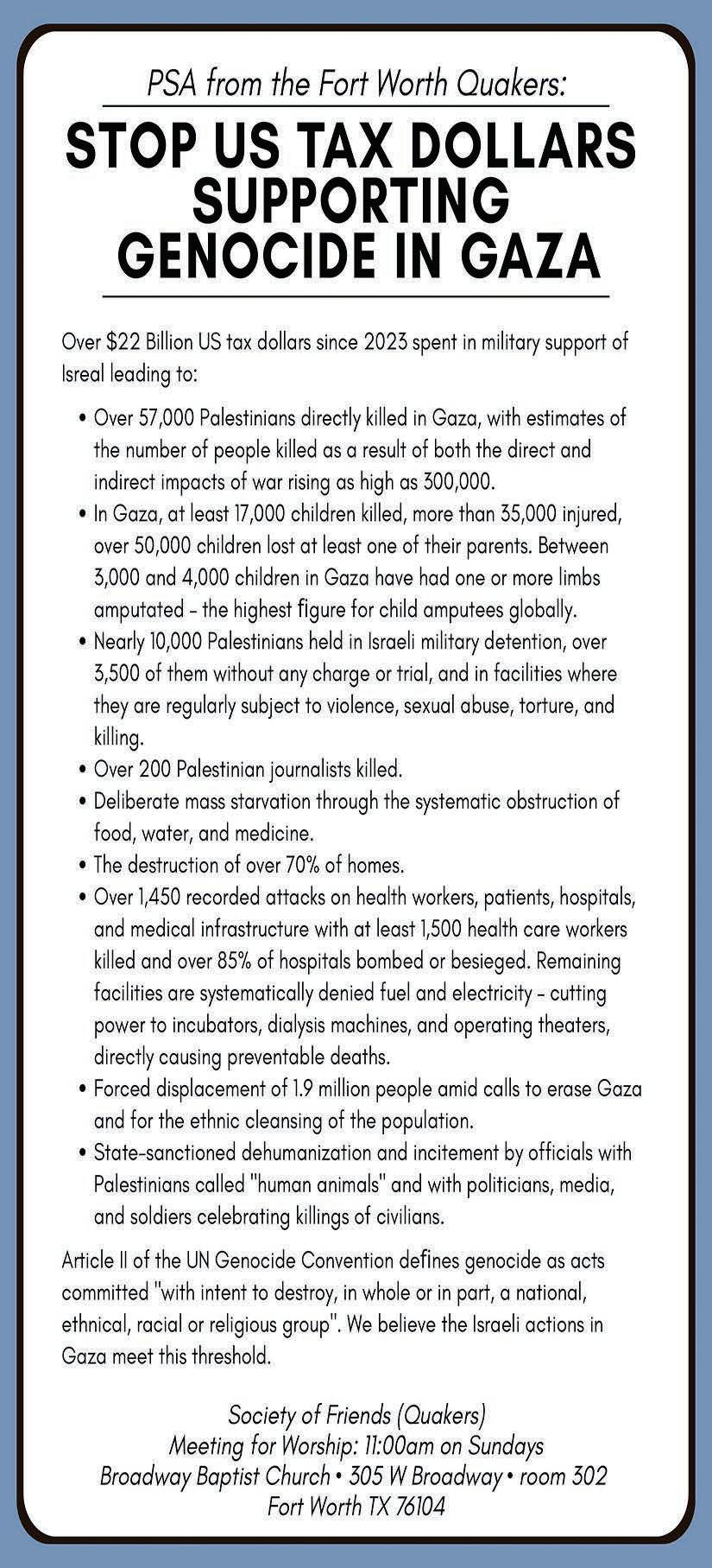 This column reflects the opinions of the editorial board and not the Fort Worth Weekly. To submit a column, please email Editor Anthony Mariani at Anthony@FWWeekly.com. He will gently edit it for clarity and concision.