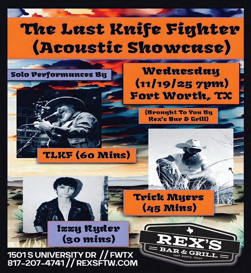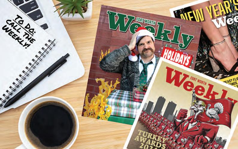 The entire contents of Fort Worth Weekly are Copyright 2025 by Ft. Worth Weekly, LP. No portion may be reproduced in whole or in part by any means, including electronic retrieval systems, without the express written permission of the publisher. Please call the Fort Worth Weekly office for back-issue