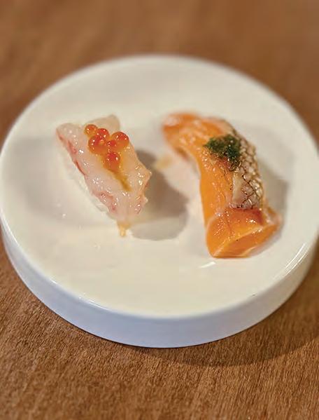 Some nigiri options share meat with the crudo. Other items include salmon egg, freshwater eel, and deep-red tuna.
