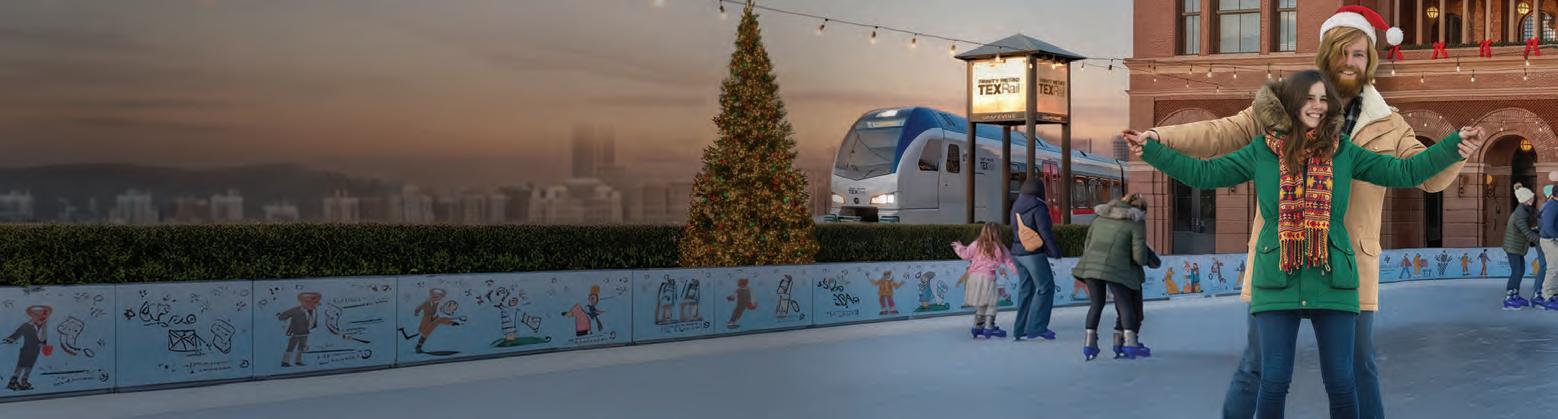 The Fort Worth Parade of Lights is on everyone’s wishlist this year, so avoid all that holiday tra c with Trinity Metro TEXRail!