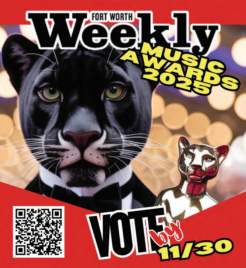 **Yes. It’s Panthy time, y’all! At the Weekly, November means the beginning of Music Awards season. During the voting phase for Best Of 2025 in August, we asked you to nominate businesses and people in various categories, including local music, and you did not disappoint. When the special issue hit the stands in late September, we put the Readers’ Choice music results on ice. Along with your top choices, we added a few of our critics’ picks, and now it’s time to make your final votes at FWWeekly. com/music-awards-2025/.