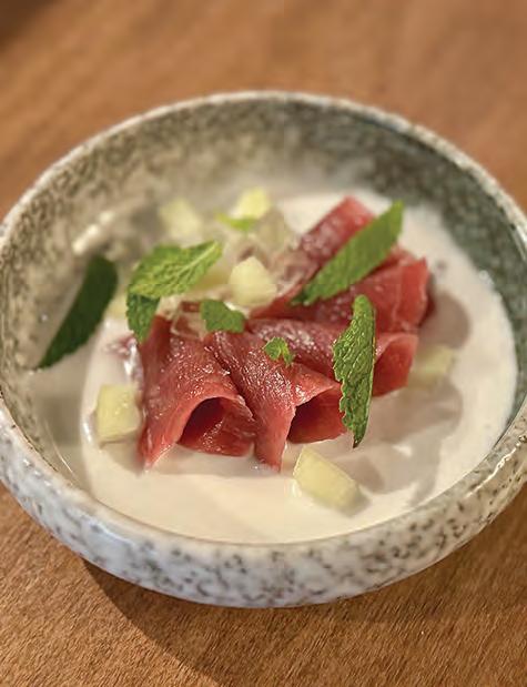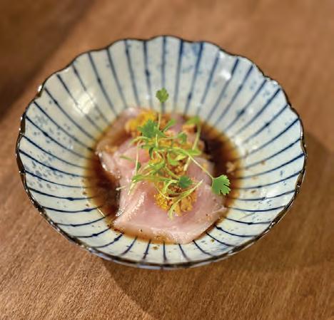 Coconut zu and gelled coconut cubes sweetened this Bluefin tuna crudo.