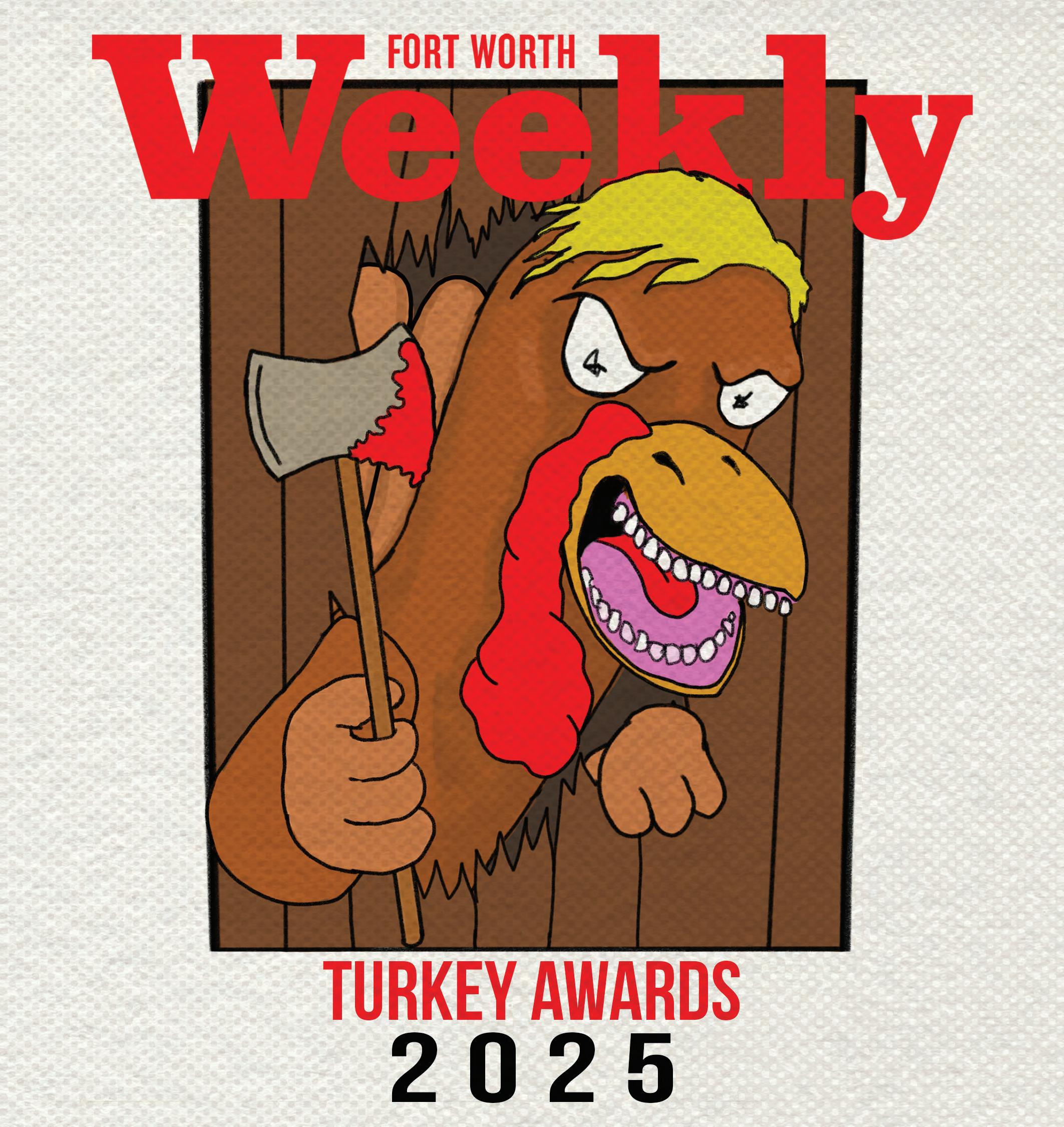 So, pull up a metal folding chair to McDumpster’s, give a halfhearted thanks, plug your nose, and dig in. The Fort Worth Weekly’s 2025 Turkey Awards are served, hot and stinky.