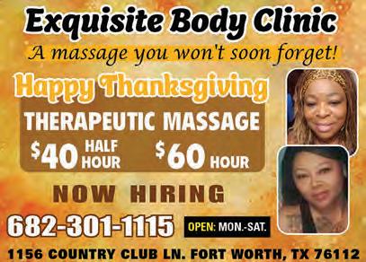 Join the Potter’s House of Fort Worth (1270 Woodhaven Blvd, 817-446-1999) for Sunday Service at 8am and Wednesday Bible Study at 7pm. For more info, visit us online at www.TPHFW.org.