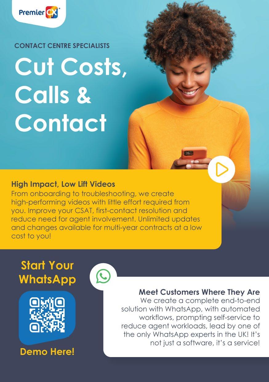 Premier CX helps you reduce costs, lower call volumes and improve CSAT through our unique Video and WhatsApp Managed Services. Our Video Managed Service delivers short, branded videos that explain processes, answer FAQs, and support training or onboarding. These videos encourage self-service, deflect calls, and reduce handling time while ensuring accessibility through captions and inclusive design. With fast turnaround, hosting, and analytics, organisations can track engagement and continually optimise content without heavy internal resource demands. Our WhatsApp Managed Service provides customers with a seamless, conversational channel they already trust. Combining automation and live agents, it handles common queries efficiently while offering personal support when needed. The service reduces call volumes, improves productivity, and consistently boosts CSAT, with measurable ROI achieved quickly. Premier CX designs, manages, and refines the entire experience, ensuring businesses can engage customers effectively while focusing on core operations.