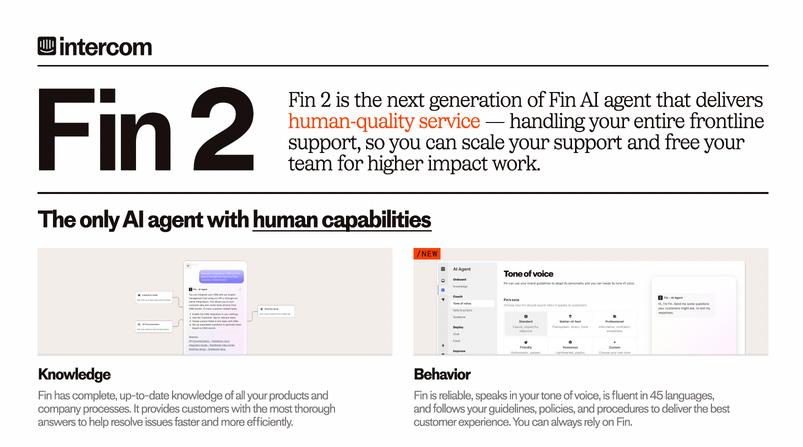 Intercom is a complete AI-first customer service platform designed to enhance communication between businesses and their customers. Founded in 2011, it serves over 25,000 businesses, providing tools that integrate AI and automation to deliver personalized support experiences. The platform features Fin, an AI agent capable of handling frontline support with human-like quality, offering instant and accurate responses across any platform. For support agents, Intercom provides an AI-enhanced inbox and Fin AI Copilot, which assists agents in delivering efficient service. Support leaders benefit from AI-generated insights and reporting tools to optimize team performance. Intercom’s mission is to make internet business personal by fostering strong customer relationships through innovative communication solutions.