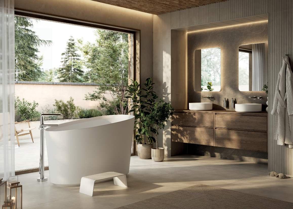 Recognition ofthe bathroom as awellness space, beyond our basic washing needs, has grown rapidly in recent years, especially in hospitality. Spending time quarantined from the ‘always on’modernworld, focused on simple rituals of cleansing and meditation, has benefits for physical and mental health. Nordic and Japanesetraditionsofbathingareincreasinglyinfluential. Restoring the soul, as well as the body, is the aim.