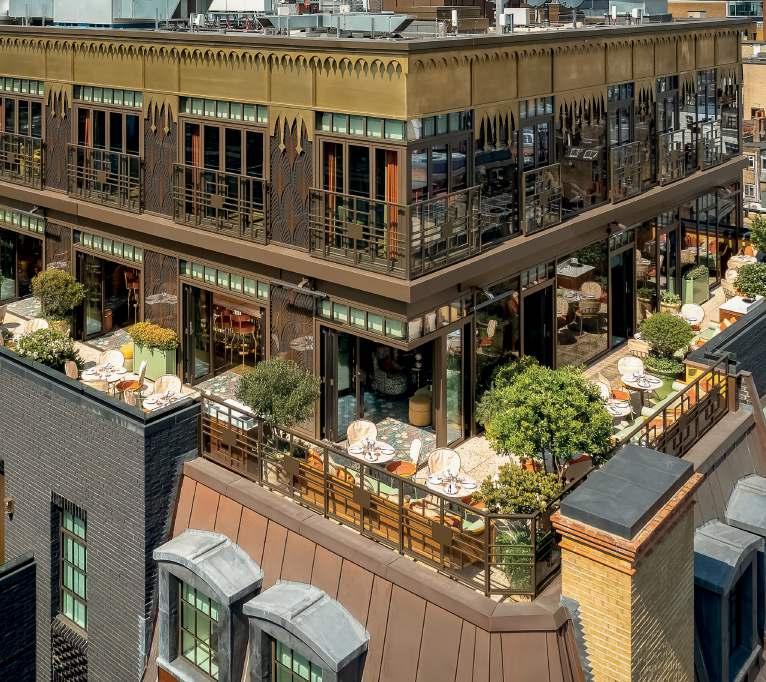 Housed in a building whose design echoes a 1920s transatlantic cruise liner, Sea Containers London has long embraced its nautical inspiration. From the moment guests enter the reception area – anchored by a striking chain-link sculpture and flanked by sweeping copper walls inspired by 19thcentury clippers – they are immersed in a maritime narrative. Throughout the property, thoughtful details such as gilt-edged portholes and floor-to-ceiling windows overlooking the Thames reinforce this distinctive theme.