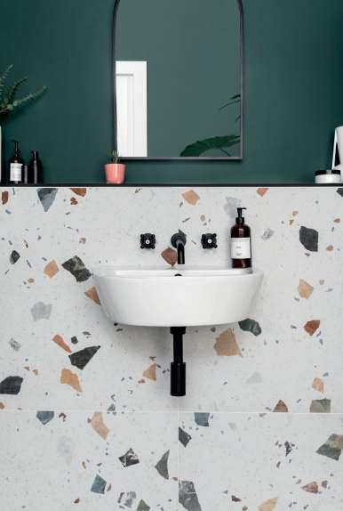 Welcome to the playful charm of terrazzo stone with Sorrento, a detailed terrazzo effect tile with a strong porcelain construction and rectified edges for a seamless finish. The large format tiles, with colourful speckling, features a blend of warm and cool tones, for a bold contemporary feel. With 10 different face variations, each tile boasts a natural, nonrepetitive appearance, bringing a sense of organic beauty to your interiors. Good looking and versatile, they are perfect for both interior walls and floors.