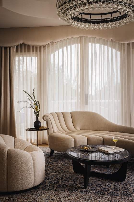 ArtplaysamajorroleinallMaisonsParientehotels,eachdesignedwith its own identityand refined artistic flair.There are fourhotels in exceptional locations – Crillon le Brave in Provence, Lou Pinet in Saint-Tropez, Le CoucouinMéribel,andLeGrandMazarinin.